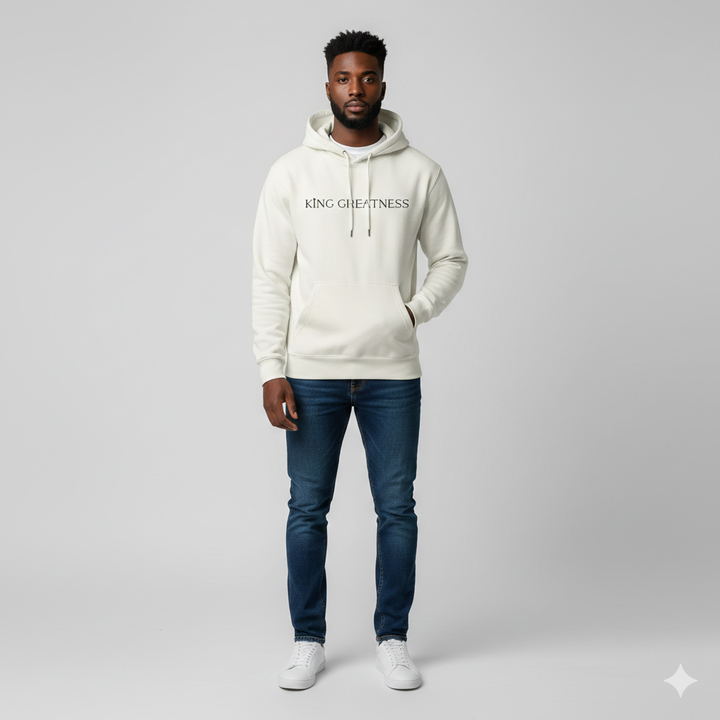 The Men’s King Greatness Hoodie is a premium wardrobe essential designed for comfort and style. Made from soft, breathable fabrics, it offers warmth and flexibility for daily wear. The clean, modern design is perfect for streetwear or casual outfits, while subtle King Greatness branding makes a bold yet refined statement. Featuring a drawstring hood and front pocket for convenience, this hoodie is both functional and fashionable. Perfect for layering or wearing solo, it’s ideal for men who value comfort, quality, and confident style.